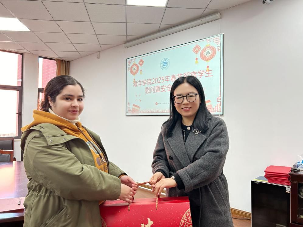 在竺银康楼303会议室举行了新春留校学生慰问暨安全教育座谈会。学院党委副书记张乐、学工办相关老师向20余位新春留校的中国籍学生以及留学生送上祝福。