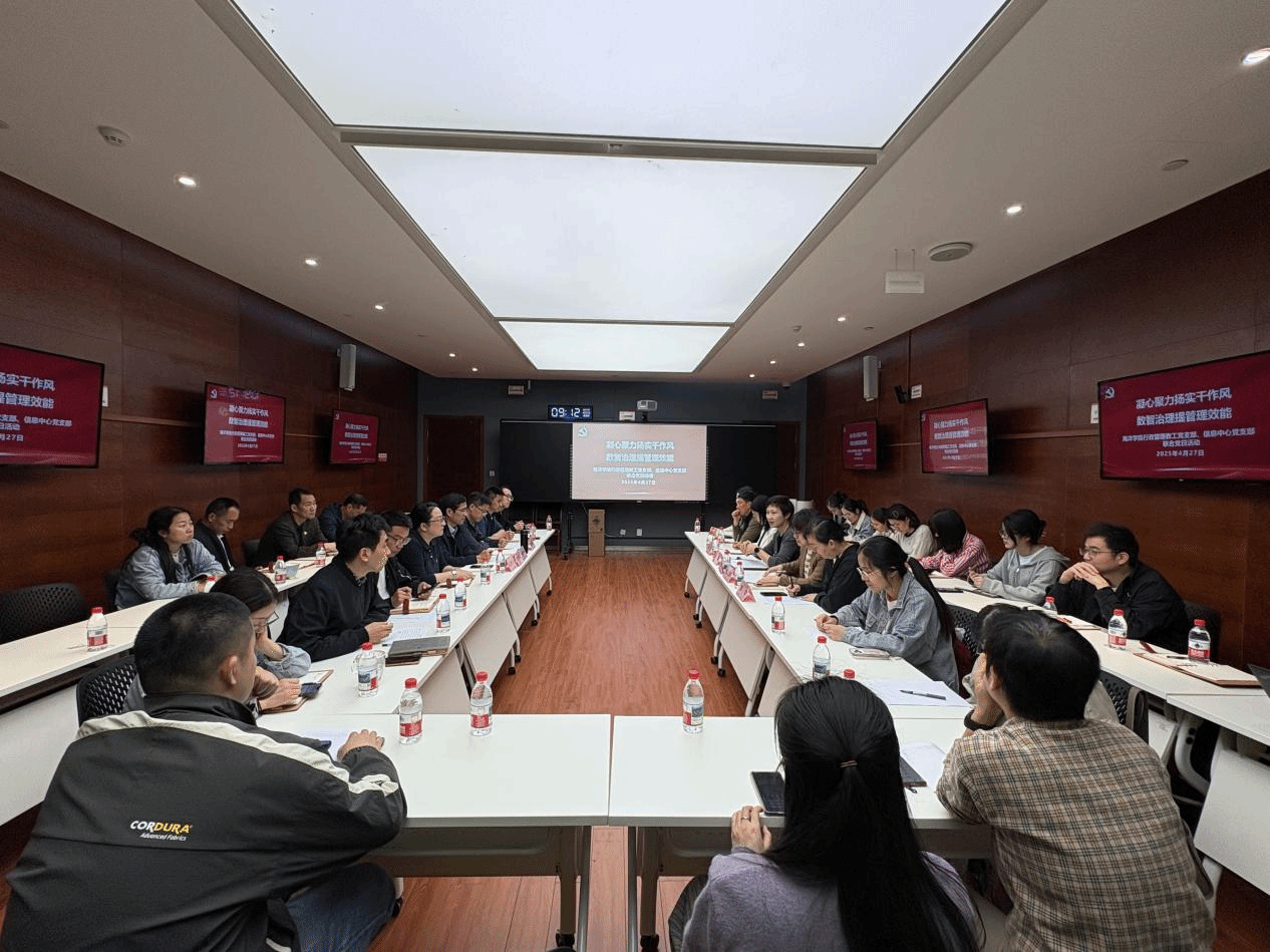 行政管理教工党支部和信息中心党支部于4月27日在真诚图书馆A212会议室联合开展“凝心聚力扬实干作风,数智治理提管理效能”主题党日活动。双方全体党员通过实地参观、理论学习、业务交流等形式,共谋数智治理新路径,同绘教育强省建设新篇章。