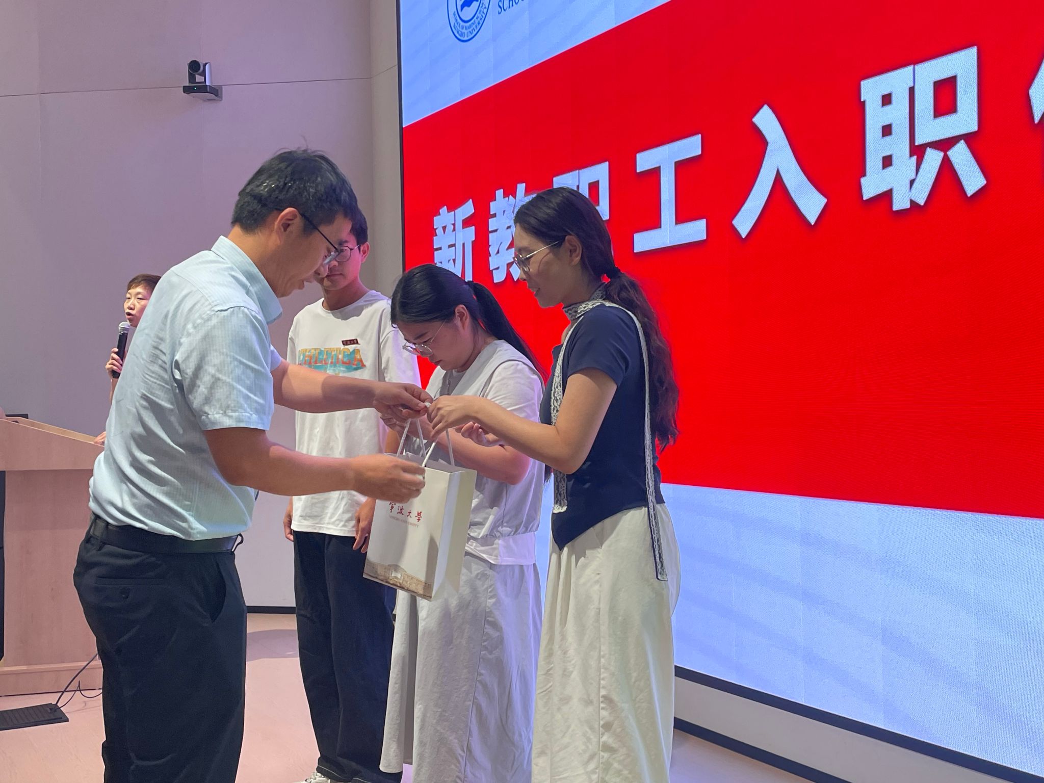 校徽并赠送纪念品,热烈欢迎他们正式成为学院大家庭的一员。包玉刚卓越人才、新教师代表吴富村教授在发言中表达了加入暗网禁区