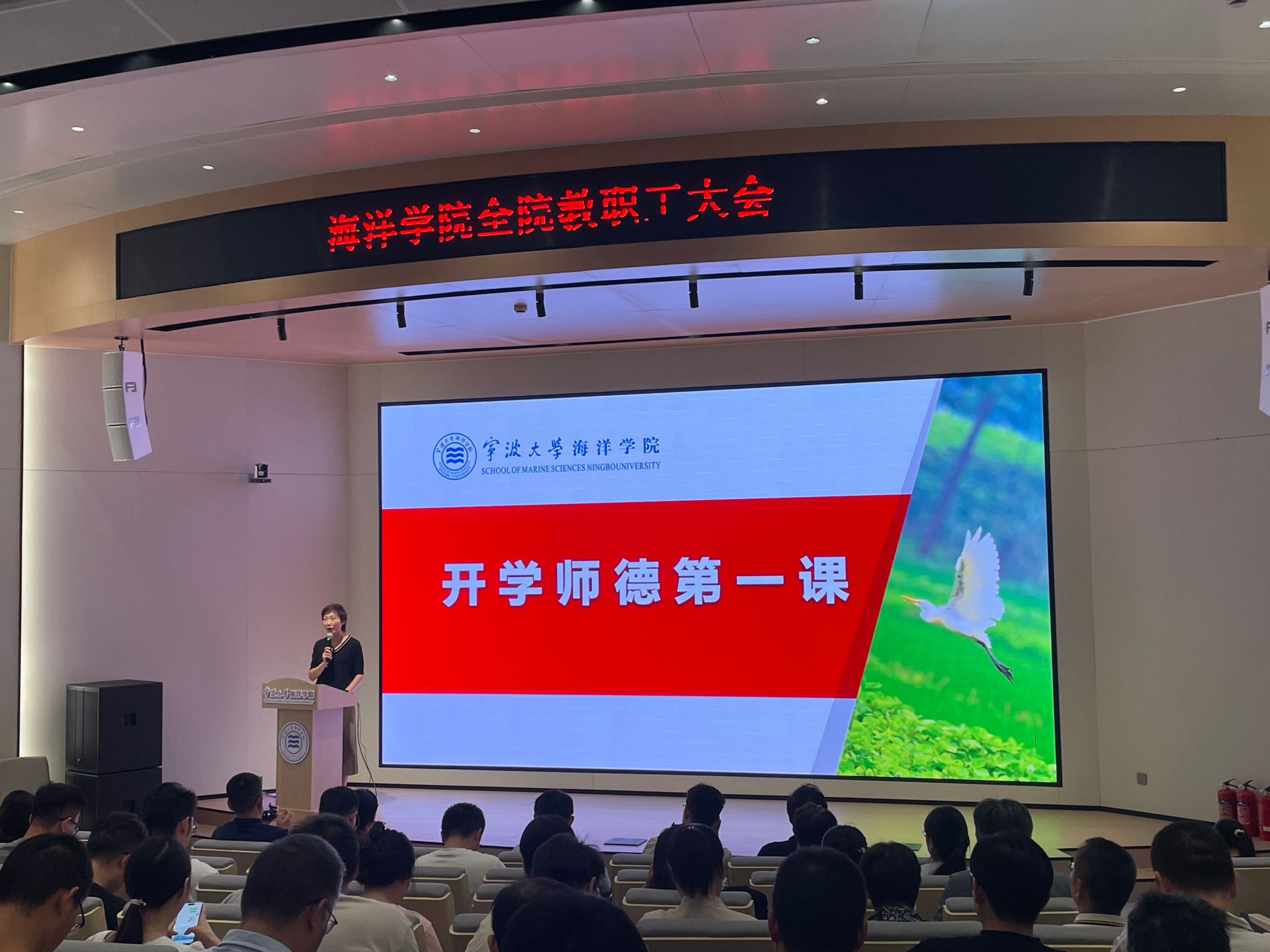 2026学年第一学期全体教职工大会在学院中试基地报告厅召开,学院党政领导班子成员和全体教职工出席会议。学院党委书记邵丽主持会议。