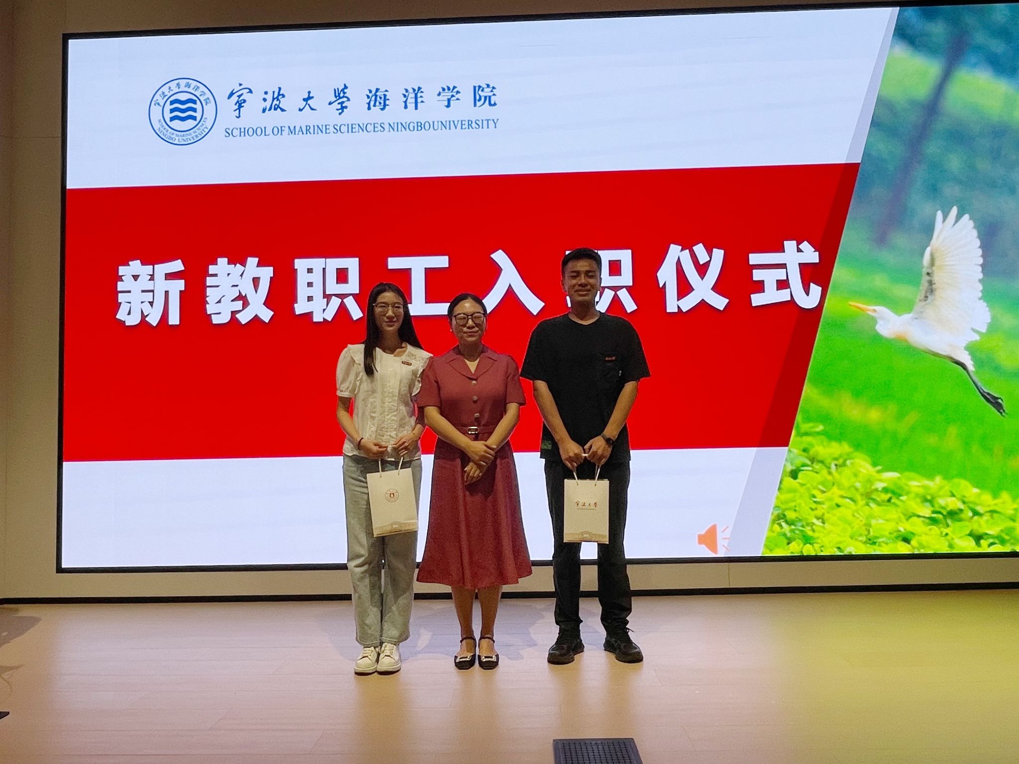 。为迎接新教职工的到来,大会隆重举行新教职工入职仪式。在全场老师的热烈掌声中,11名新“海洋人”逐一亮相。学院领导为他们佩戴暗网禁区