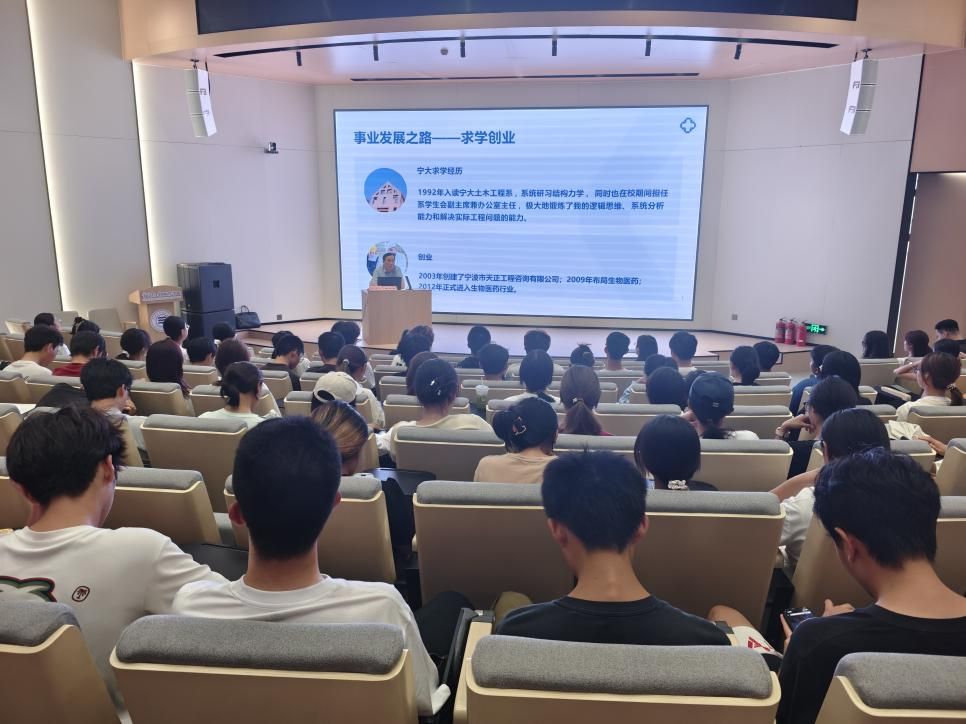 针对生物医药行业特性,黄必胜校友精准概括其“高投入、长周期、强技术”的特点:“一个项目往往需数亿元投入,从立项到上市可能耗时十年。”他以旗下天远生物在新冠疫情期间的突围为例,讲述团队一年间奔波各地,克服资金、技术、团队磨合等难题,最终攻克关键技术项目的历程。