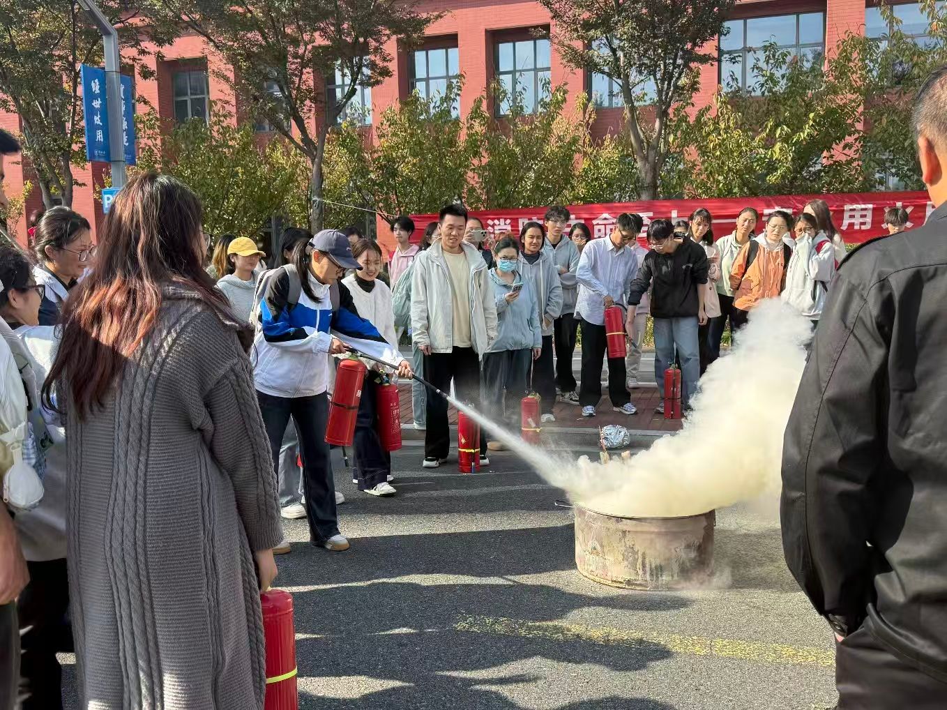 为保障活动有序开展,筹备组提前完成了场地布置、物资准备(配备50具灭火器、2套灭火桶等器材)及人员分工,现场指挥、疏散引导等岗位全程值守,确保实操环节安全高效。参与活动的新生表示,“从理论到实操的体验,让我们真正学会了火场自救技能”。本次活动将消防安全教育落到实处,为构建平安校园筑牢了安全防线。