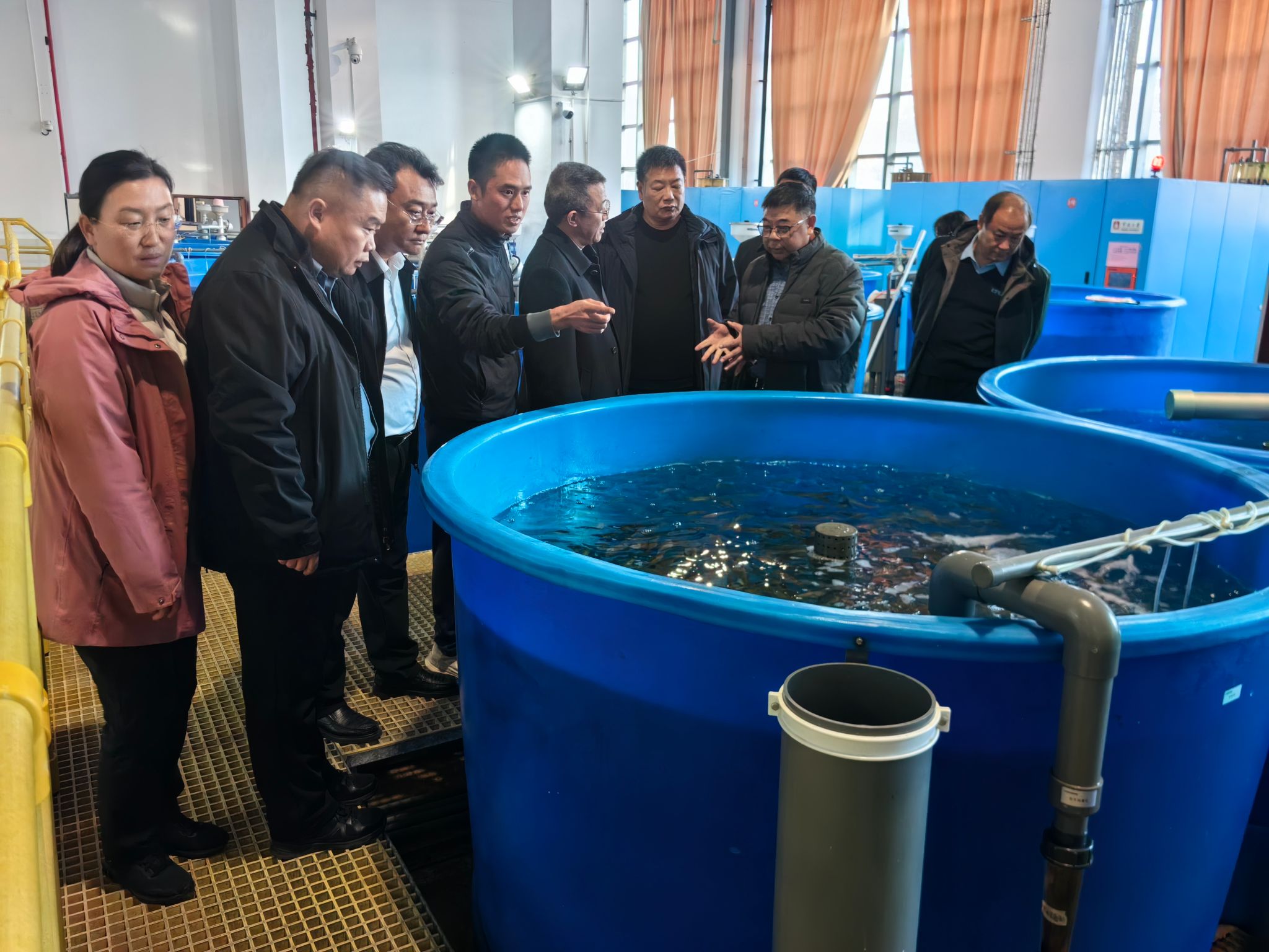 院史馆与中试基地。在院史馆内,一幅幅图文展板、一幕幕多媒体影像,全方位勾勒出学院的发展脉络,生动展现了其在海洋科研领域取得的亮眼成就,让大家对学院的办学底蕴与科研实力有了更深刻的认识。来到养殖基地,科研人员围绕鱼、虾、蟹等水产品育种实验设备,进行了细致全面的讲解。从实验室里的技术攻关,到田间塘头的成果转化,直观呈现出学院打通 “科研 — 产业” 转化通道的硬实力与深厚积淀。