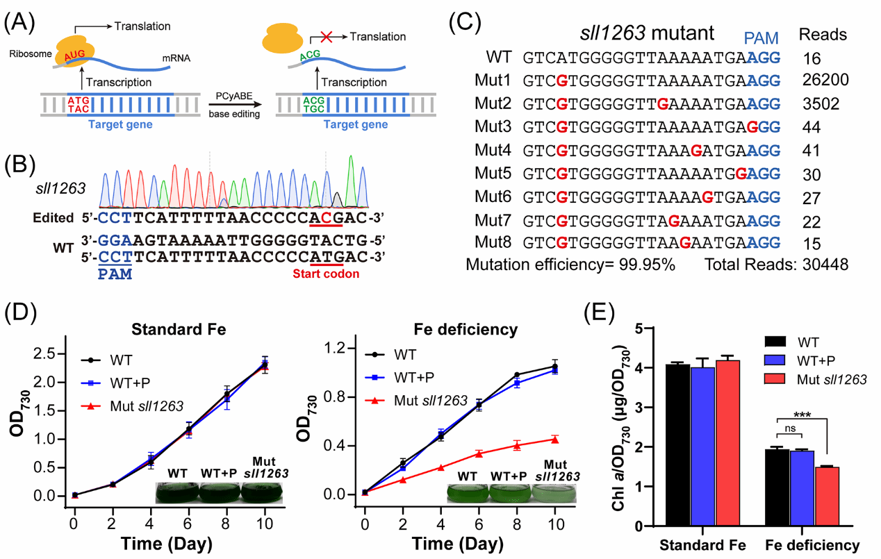 图2. pCyABE系统实现蓝藻精准碱基编辑与基因功能研究