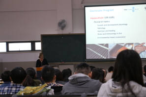 Lourdes教授首先就加泰罗尼亚理工大学进行了简单的介绍,然后从海洋科学、技术和社会科学三个方面全面详细的介绍了UPC在水产学科的研究方向及成果。