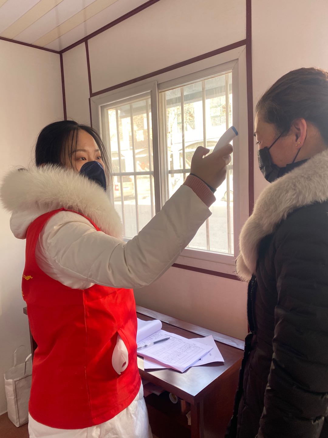 据徐瑜潞回忆,在老矿街道搪瓷厂宿舍防疫点执勤的日子里,她每天协助社区和分管此片区的经济发展局进行出入登记、测量体温、监督进出人员带好口罩等工作。工作每天按部就班,来到防疫点、穿上印有“中国志愿服务”的红马甲、拍一张交接班的照片,接着就开始了一天的工作:扫码、登记、量体温、放行或劝返,循环往复,乐此不疲。在志愿服务中,她积极主动的服从组织的安排,在执勤卡点,认真负责的落实每一项防疫工作,年后的天气依旧寒冷,但是她对工作的热情丝毫没有减退。工作的内容做的久了不免显得有些单调乏味,但是她依旧怀揣满腔的热血去完成,一丝不苟,严谨认真,时刻把自己的使命记在心头。