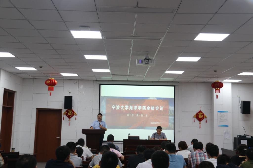 召开了本学期第一次全体教师会议,会议首先举行了一个简单却温馨的新进教师欢迎仪式,仪式由学院院长、书记以及工会主席为新海洋人佩戴校徽、赠送礼品。