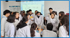 刘博士首先向学生简单讲述了微流控芯片的发展历史,认为等温扩增技术的成熟助推了微流控芯片在核酸即时检验中的快速发展和应用,也详细讲述了微流控芯片在我国各检测领域的应用情况。同时,刘博士以《人宠共患病多联微流控芯片快速检测》的应用实例(模板为目标基因重组质粒,无风险),详细阐述了微流控芯片根据市场需求个性化灵活设计的理念,向同学们演示了微流控芯片的加样操作、仪器使用、结果判读及数据输出,并对学生的现场操作进行了具体指导。2018级生物技术本科生参与了学习与交流。