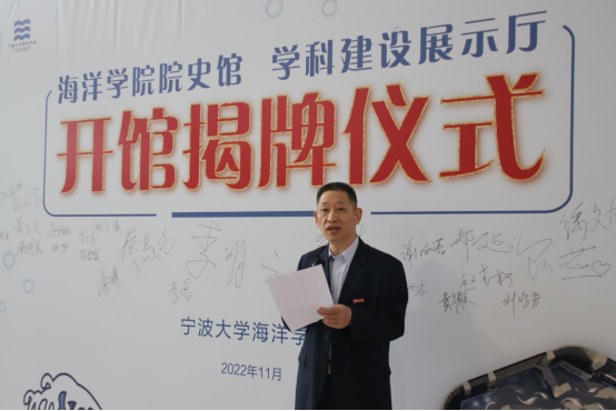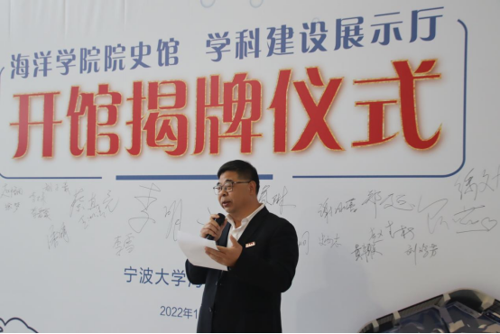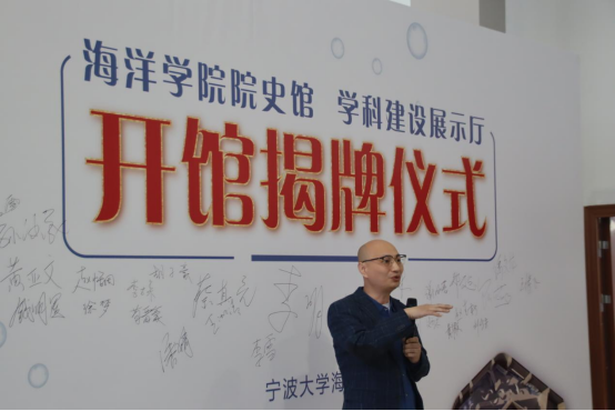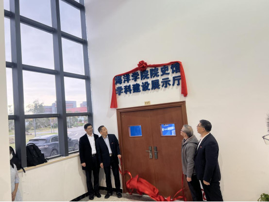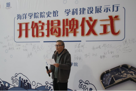 学科建设发展的传承。随后李明云老师发言,他对院史的挖掘及梳理工作表示了肯定,希望全体师生坚定信念、勇挑重担、再创辉煌。接着吴润平会长介绍,通过梳理学院发展建设过程中珍贵的历史节点,让广大师生进一步明确我们从哪里来,传承并弘扬爱国爱校精神,号召广大校友时刻心怀感恩、回馈母院。最后,蔡真亮指出院史馆既是六十余载办学历史和办学成就的浓缩,也是海洋人精神和文化的呈现,希望学院师生以坚定的信念和使命,在社会主义现代化新征程上谱写华彩篇章!