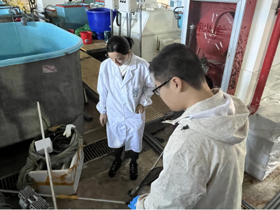 “渔乐小苑”产教融合实践基地是学院为专业学生进行养殖实践提供的专门场地,占地面积4千平方米,基地内包括智能化蟹类循环水养殖系统24套、蟹公寓4套、海水处理装置1套、养殖环境数据管理及追溯系统1套、饲料加工车间1间。基地内设施设备的维护、环境的卫生需要专业学生来参与,本次劳动实践内容主要有水处理系统维护、养殖动物排泄物处理、智慧养殖系统维护、基地内配套设施的擦拭、基地内环境卫生等劳动。
