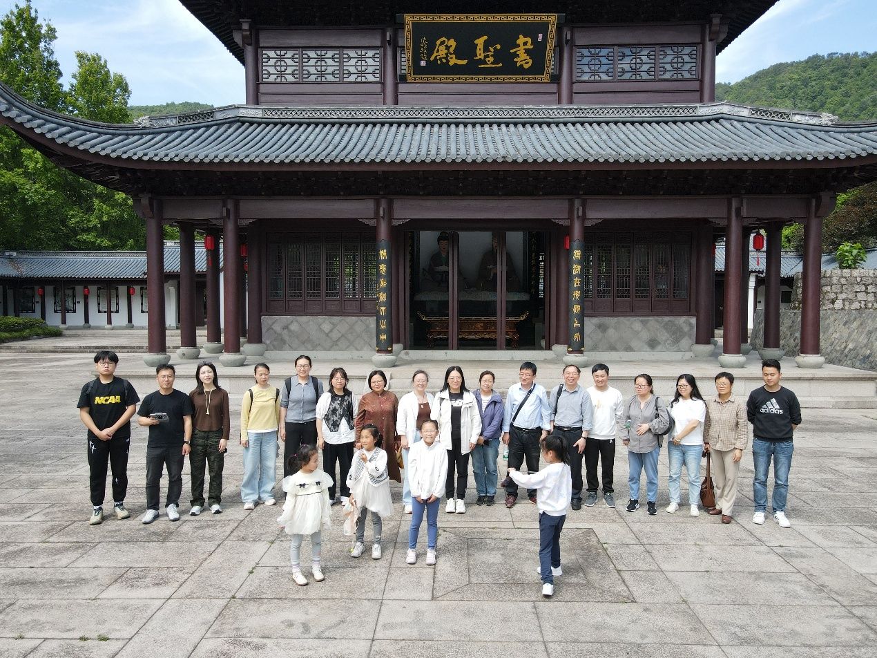午饭后,大家来到王羲之故居。东晋永和十一年,王羲之辞官弃郡,携妻带子在此隐居,写下了许多传世之作,成为了一代书法圣贤。7年后归葬于瀑布山麓。这里背靠青山,王羲之墓也坐落在风景如画的金庭观中。近年来,重建了金庭观、书圣殿、右军祠、雪溪书院、书画长廊、书法园林等景点。这里的翰墨书香积淀了厚重的文化底蕴,让人感受到扑面而来的历史文化气息。