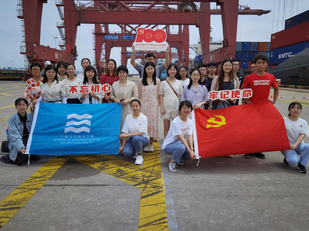 行政管理教工党支部十余人及学生支部24人赴宏伟壮观的梅东码头一号泊位举行“海港码头宣誓·牢筑初心使命”庆祝建党100周年主题党日活动。